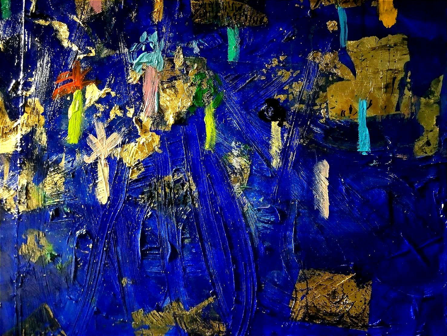 "Depth of Presence. Oil and Acrylic paint with Gold Leaf on board.